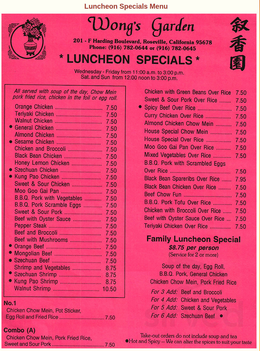Online Menu Of Wongs Garden Restaurant Hollister California 95023 Zmenu